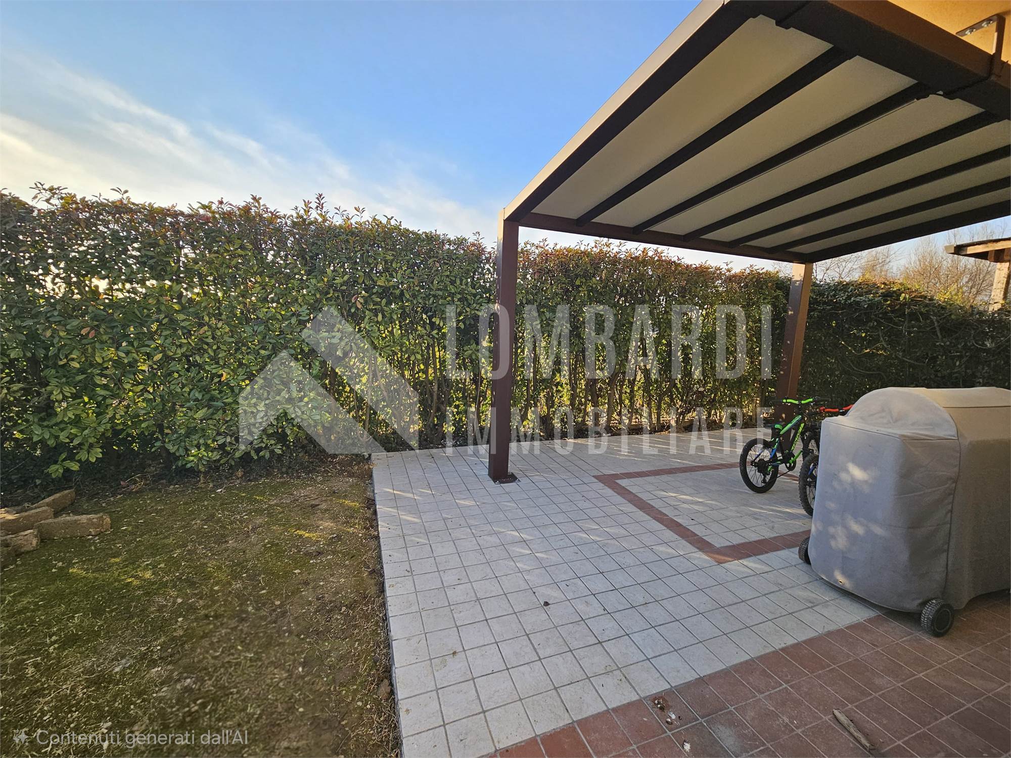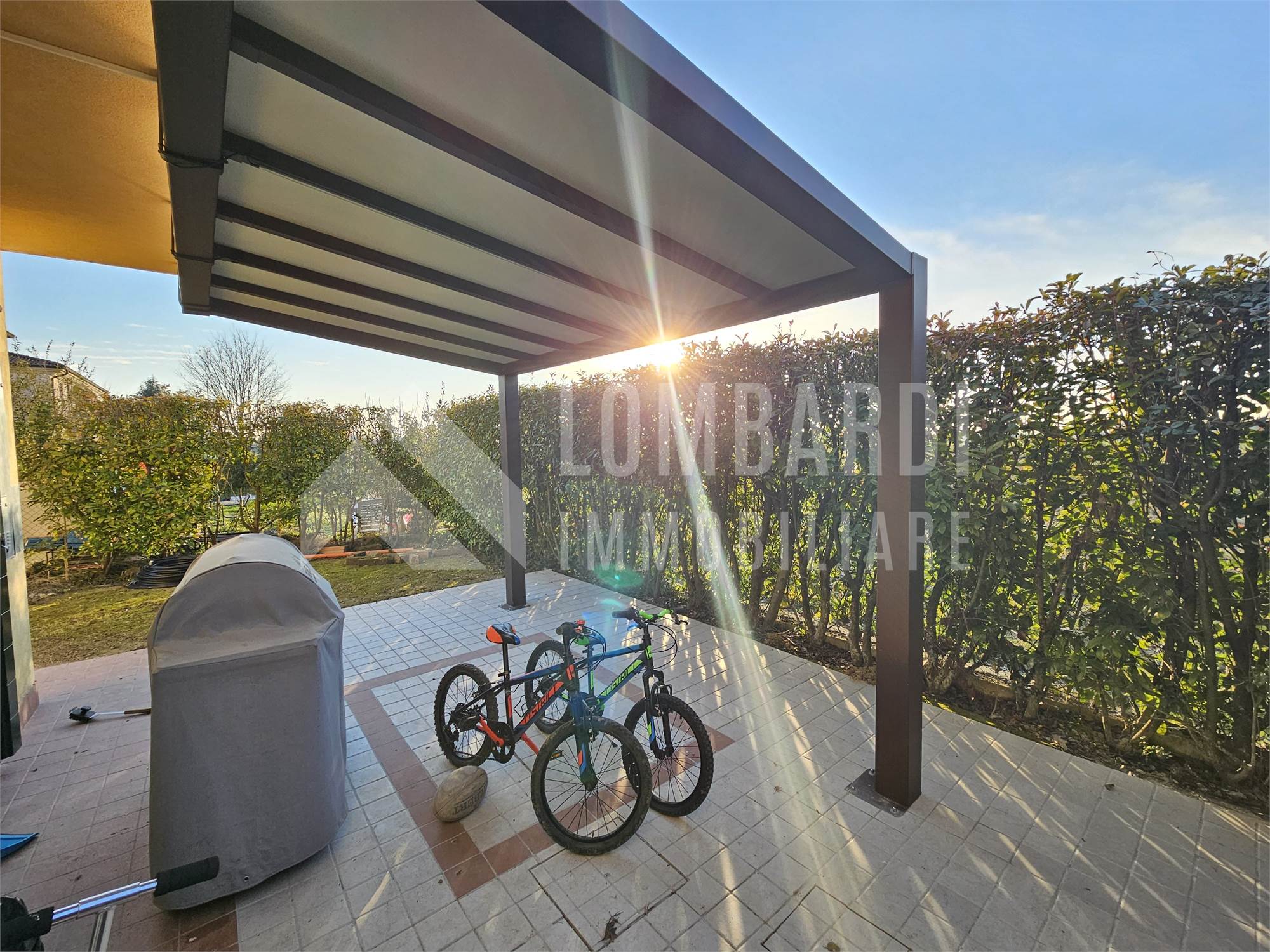 L’abitazione dispone inoltre di una splendida area esterna, impreziosita da una pompeiana, ideale per pranzi e cene all’aperto in compagnia.